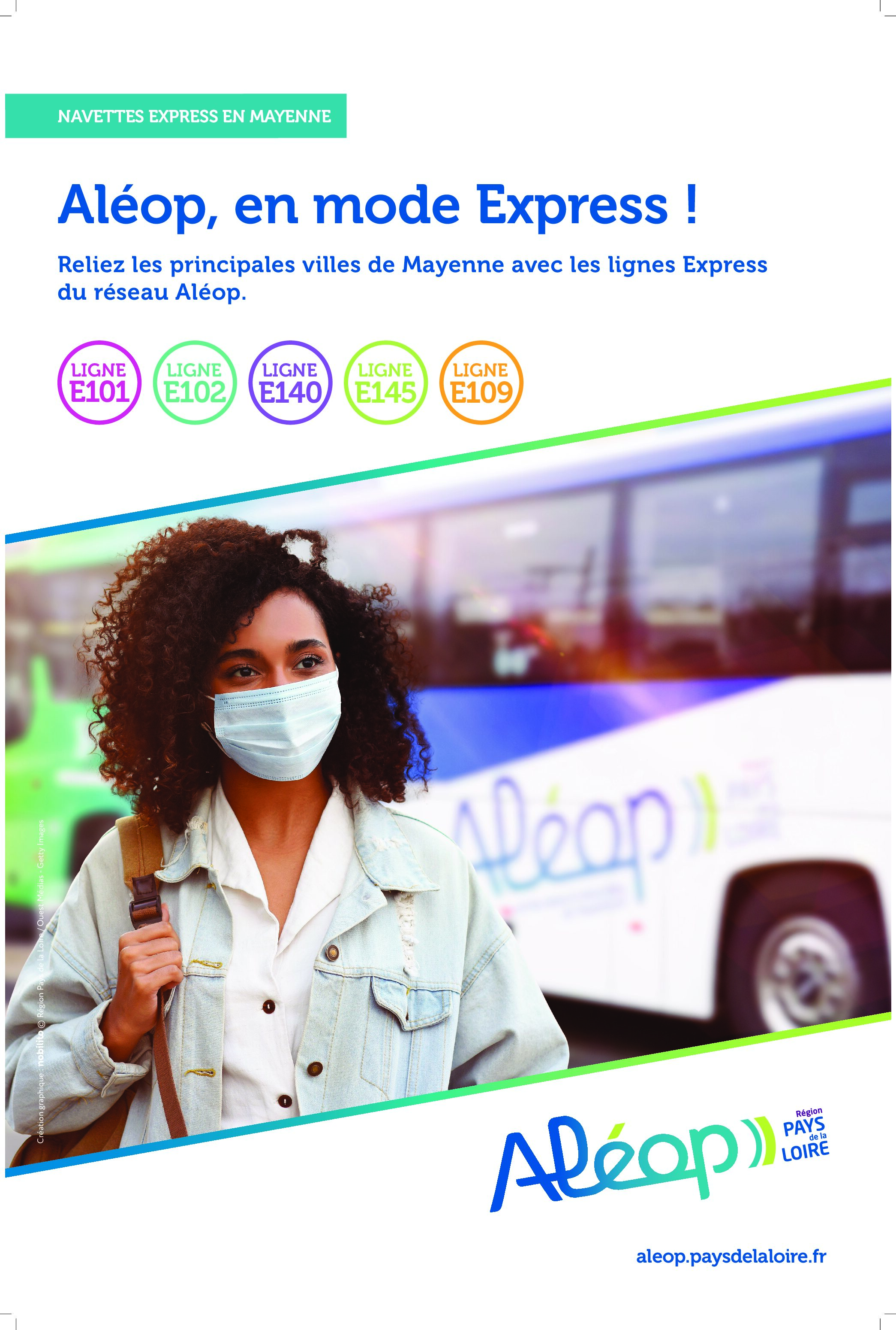 Dans le cadre de sa compétence transports, la Région des Pays de la Loire a mis en place un service de navettes express interurbaines Aléop en Mayenne. Pour rappel, ce sont cinq navettes express qui circulent toute l’année sauf dimanche et jours fériés : E 109 Meslay-du-Maine – Laval, E 145 Ernée – Laval, E 140 Craon - Laval (navette 100% électrique), E 102 Mayenne – Laval, E 101 Château-Gontier – Laval, Elles proposent des horaires adaptés aux déplacements domicile-travail, des temps de parcours performants, toutes sont en correspondances avec les réseaux Aléop en TER et SNCF au Pôle...