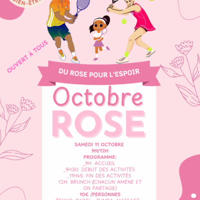 Samedi 11 octobre 9h-12h Du rose pour l'espoir Ouvert à tous