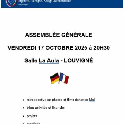ASSEMBLÉE GÉNÉRALE COMITÉ DE JUMELAGE VENDREDI 17 OCTOBRE 2025 à 20H30 Salle La Aula - LOUVIGNÉ