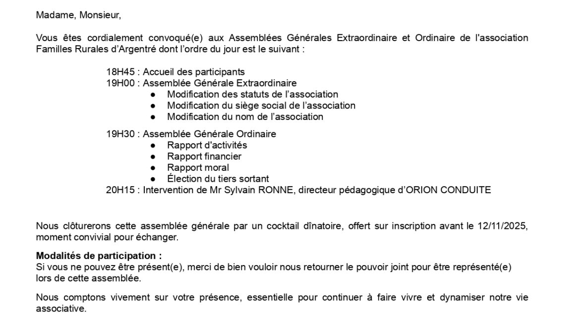 ASSEMBLÉES GÉNÉRALES EXTRAORDINAIRE ET ORDINAIRE FAMILLES RURALES