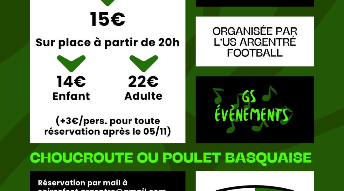 Choucroute de l’US Football à l’Escapade le 15 novembre 🕺💃🎵 By AccueilIn ActualitésPublié le 16 octobre 2025 Repas à emporter ou sur place. Post expires at 14:46pm on samedi 15 novembre 2025