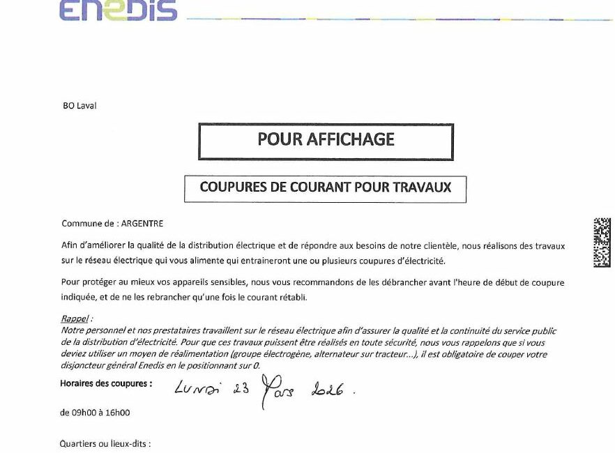 Coupures de courant le lundi 23 mars 2026