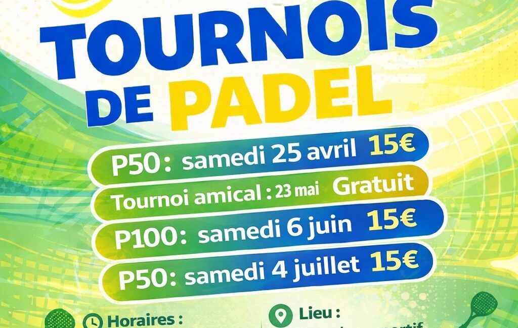 Tournois de Padel au complexe sportif sur inscription 🎾🥎 By AdministratifIn ActualitésPublié le 23 avril 2026