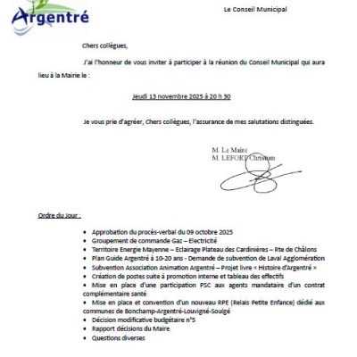 ASSEMBLÉES GÉNÉRALES EXTRAORDINAIRE ET ORDINAIRE FAMILLES RURALES Jeudi 20 novembre 2025 à 18h45 Salle de l’Escapade - Argentré Inscription avant le 12/11/2025 Coupon d'inscription